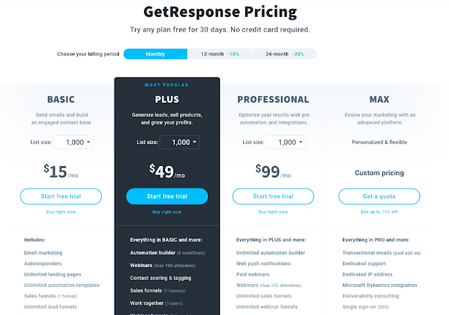 Now, We Talk about GetResponse Pricing.